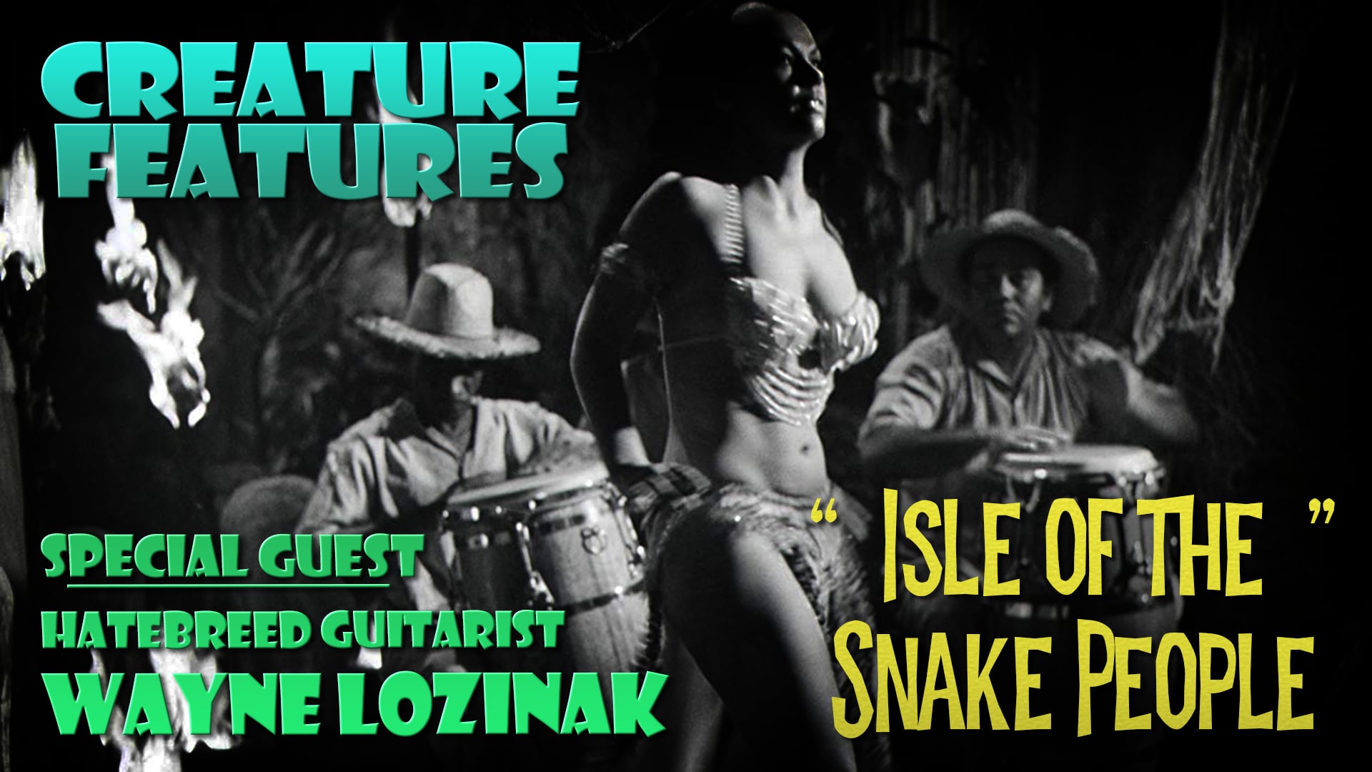 We’ll be watching 1971’s “Isle Of The Snake People.” One of Boris Karloff’s final films. You should watch it too. It has zombies. And joining us as our guest will be legendary guitarist Wayne Lozinak from the metal band Hatebreed. He’ll talk guitars, concerts and horror movies with us as we watch tonight’s film.